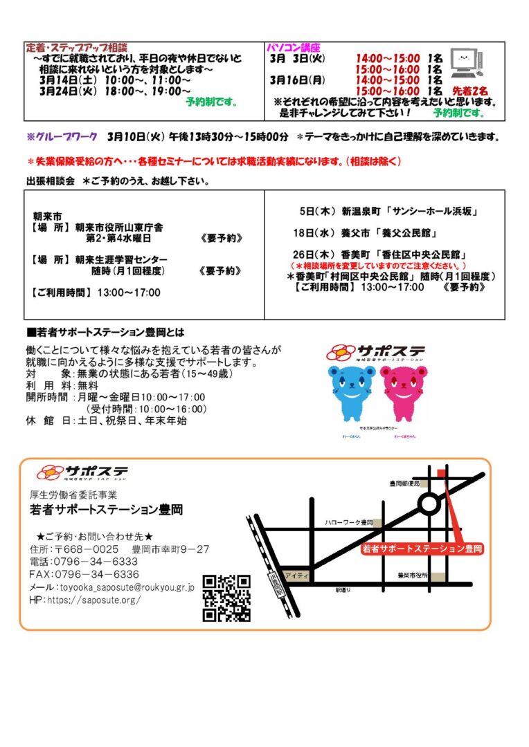 サポステ豊岡2026年3月の予定を掲載します。