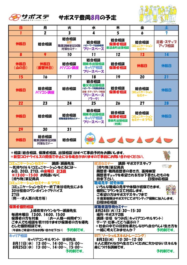サポステ豊岡 2021年8月の予定です。